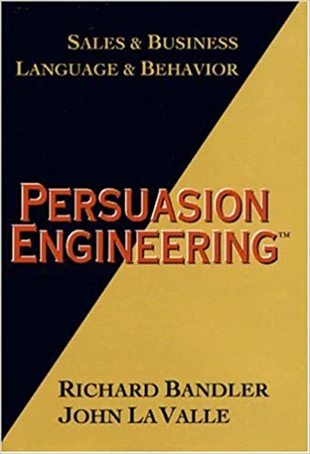 When NLP first started Bandler and Grinder modeled the world-class therapists Virginia Satia and Milton H. Erickson. In *Persuasion Engineering*, Bandler and co-author John Lavalle leave the therapeutic setting and enter into the world of sales. What is unique about this sales book is that Bandler brings to it many of the language patterns he picked up from his time spent studying therapists. At its root, Persuasion Engineering is a book all about how you can change peoplesâ emotional states and to get them to take action.
