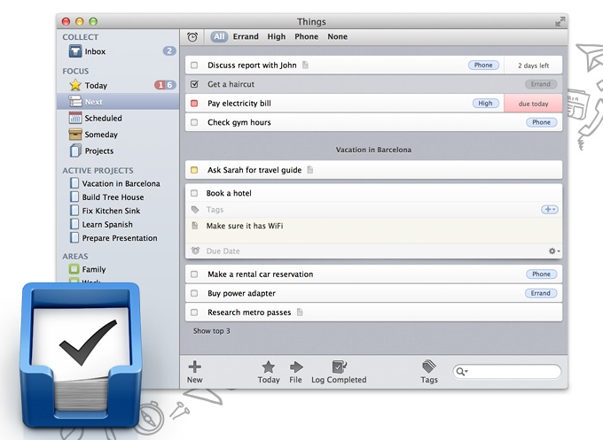 Things has a ‘Today’ task list, which is extremely helpful so you don’t get bogged down with ALL of the tasks you have ahead of you. Take it one day at a time and maintain your sanity.